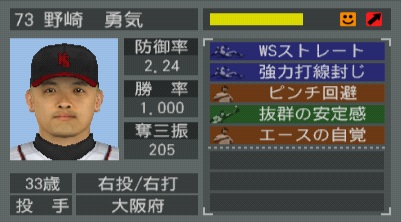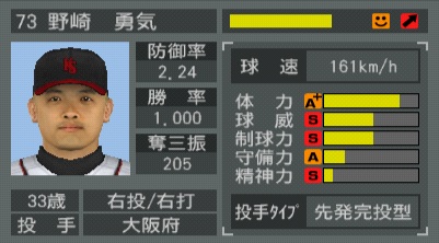 モデルは尾崎行雄で、球速161キロに制球Sとステータスは最上位クラス。