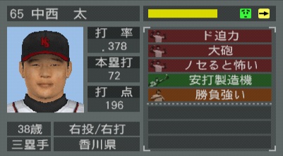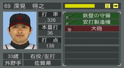 51年目のドラフトで加入し、21歳で安打製造機と大砲を習得。タイトル獲得は無し。