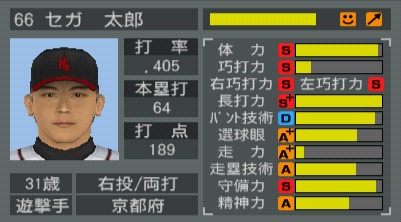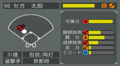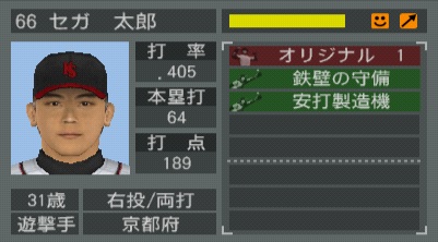 63年目に作成し、24歳で鉄壁の守備、26歳で安打製造機を習得。24歳で爆発。